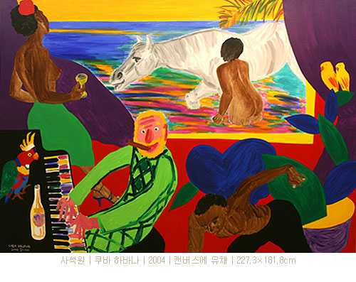 이번에 전시 될 사석원씨의 작품은 150호 크기의“쿠바 하바나”, “꽃과 당나귀”와 “석불과 새”, “소녀와 강아지”, “꽃”등으로 다양한 작품을 감상 할 수 있다. 사석원은 각 작품에서 동화적인 소박함과 즐거움을 안겨 주기도 하고 때로는 환상적인 분위기를 보여 주면서 작가 특유의 경쾌한 느낌을 전달하고 있다.