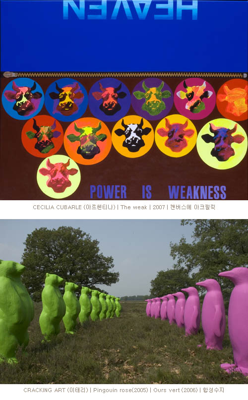 조형컬러풀한 색으로 복제된 펭귄과 곰 모형을 제작한 크래킹 아트 그룹과 가장 대중적 애완동물인 강아지들을 붉은 색으로 복제한 윌리엄 스위트러브의 작품이 포함된다.