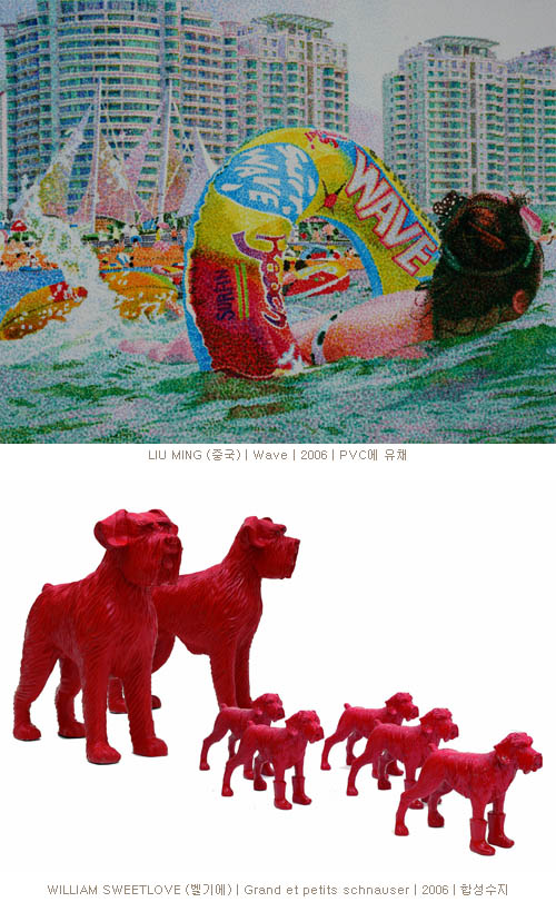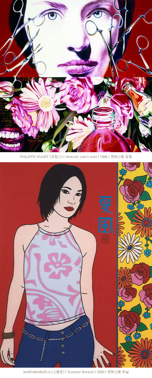 사물슈퍼마켓이나 드러그 스토어(약국)에서 흔히 볼 수 있는 상품에 사회적 메시지를 첨가하여 소비문명사회의 이미지를 새롭게 보여주는 필립 후아트, 안토니오 데 파스칼, 세실리아 쿠바를르의 작품, 그리고 각양각색의 상상의 꽃그림 100점을 화려한 색으로 그려낸 쟈오 판의 작품이 포함된다.