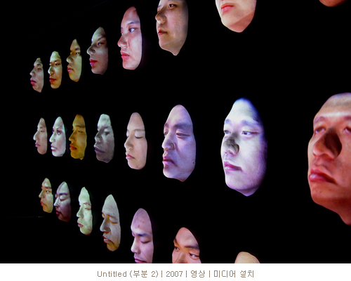 그러나 그에 대한 해석이야 어찌 되었든 그것은 한승구에게 새로운 스팩트럼의 역할을 수행해 냈다. 이제 그는 기존의 얼굴을 거세하지 않은 채 타자의 얼굴과 비순차적으로 교차, 혼재된 새로운 이미지를 생성해 낸다.(Nod방식) 게다가 24개의 얼굴이 서로 뒤섞일 때 발화점이 되어 주는 것은 터치스크린을 만져 다른 얼굴로 변하게 만들던 바로 그 관람자(매개자)의 손끝에 달려있다. 즉, 浮彫化된 얼굴화면 앞엔 24개의 전구모양의 球들이 놓여있고 그것을 어떤 방식으로 바꾸어 놓느냐에 따라 새로운 순서가 정해지는 것이다.