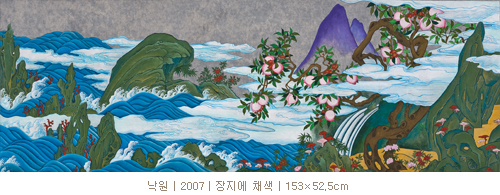 남현주의 작품을 가만히 들여다보면 작가가 주로 사용하는 장지와 분채 등의 전통적인 재료를 가지고 전총적인 이미지와 이국적인 이미지를 정성스럽게 재현해내는 과정을 통해 우리에게 이야기해주고자 하는 바는 무엇일까 궁금해진다. 사람들은 그것을 화가의 꿈과 희망으로 해석하기도 한다. 오래 전부터 작가는 우리 전통회회의 현대적 변용을 고민해왔다. 다시 말해서 그녀의 작품에서는 동양적 회화원리에 근본을 두면서 서양적 미감을 동시에 흡수하고자 하는 작가의 창작 의지를 읽을 수 있는 것이다.