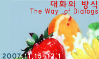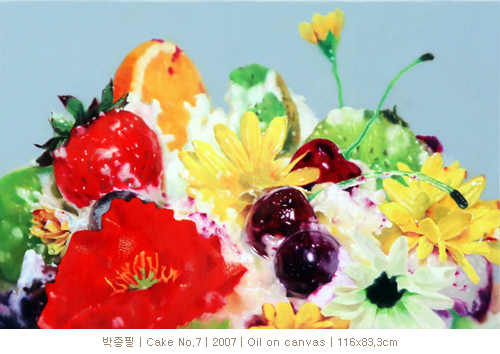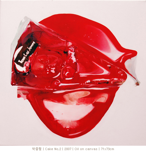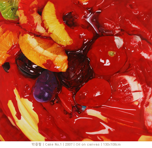 『대화의 방식 The Way of Dialogs』1부 전시의 작가 박종필은 케이크의 모형을 극사실적으로 재현한다. 이는 얼핏 보면 마치 몇몇 작가들이 보여주고 있는 극사실 회화와 크게 다를 게 없는 것처럼 보일 수 있다. 그러나 이를 조금만 주의 깊게 살펴본다면 그와는 분명 다른 무엇이 있음을 발견하게 된다. 먼저 그는 실제 케이크가 아닌 모조품을 사실적으로 재현한다. 더욱이 이 가상의 가상에는 인간의 두상이라든가 과일처럼 보이는 뇌 등이 교묘하게 조합되어 있다. 때문에 케이크는 보는 이들에게 더 이상 달콤함을 제공하는 것이 아니라 하나의 위장이며, 오히려 그로테스크(grotesque)하다. 이로써 작가는 원색의 케이크가 주는 달콤함 속에 욕망이 갖고 있는 이중성, 이른바 욕망 자체를 욕망할 수밖에 없는 인간의 존재론적 굴레를 담아낸다.