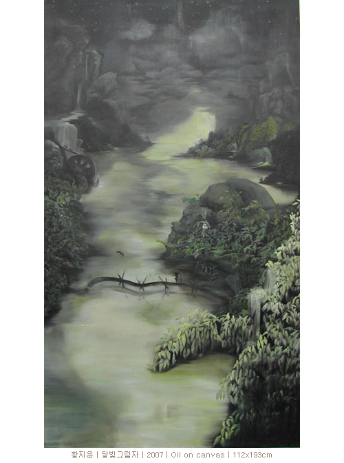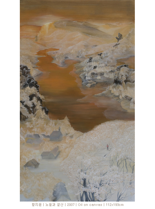 황지윤은 이발소 그림이나, 전통 산수화의 전형성 내지 대중성을 작품의 모티브로 삼는다. 그렇지만 그는 이런 형식적 틀을 차용하되 그 내부는 주관적이며, 의외적인 요소들로 재구성함으로써 새로운 긴장감을 부여한다. 이를 위해 작가는 그림을 뒤집는다든가 혹은 풍경 자체에 누워 있는 여성 등의 중의적 이미지들을 의도적으로 풍경 안에 배치한다. 아울러 작가는 돼지, 개, 토끼 등 다양한 동물(기복의 대상인)들을 등장시키기도 한다. 그에게 전형성은 그것이 더욱 상투적일수록 오히려 작가에게 매력적인 대상으로 다가온다. 이제 작가에게 그것은 하나의 놀이터가 되는 것이다. 나아가 여기에는 소통의 차원에서 이발소 그림이 지니고 있는 대중성을 보다 작품 안으로 끌어들이고자 하는 의도가 담겨 있다.