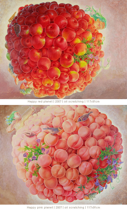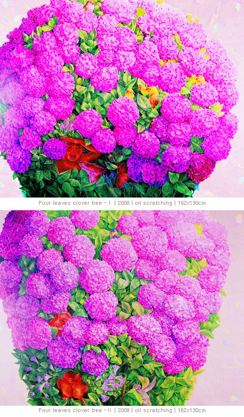 일상의 승천과 천국의 강림으로 요약되는 작품세계는 일상의 고단한 삶을 행복이라는 물감으로 채색하고, 희망을 상징하는 화려한 꽃 머리칼을 휘날리며 그의 화폭 속 인물들은 달콤한 꿈을 꾸는 천국의 모습이 화면에 펼쳐져 있다.