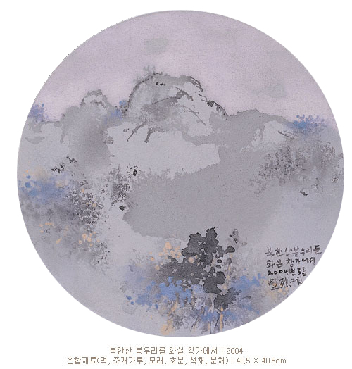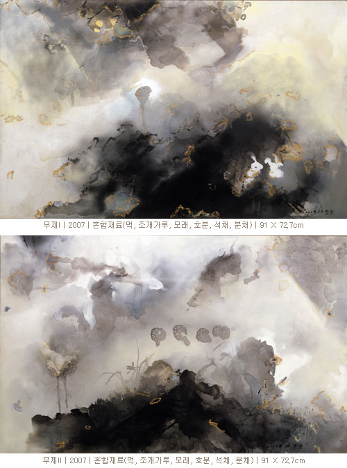 한풍렬의 작업태도를 꼭 이전 문맥에 얽매여 볼 수는 없으나 그의 작품은 적어도 장르 분류상의 고지식함을 벗어던지고 회화로서의 자유스러움을 구가하려는 의식이 분명함을 엿보게 한다. 그의 화력을 되돌아보면 이 점이 더욱 분명해진다. 80년대만 하더라도 그는 추상적 화풍을 지향했다. 일정한 상형적 흔적들을 근간으로 한 구성의 작품이었다. 그러다가 90년대에 이르면서 분방한 운필이 자적하는 표현적인 추상으로의 변화를 시도했다. 추상적 톤이긴 하나 부분적으로 대상을 연상시키는 이미지들이 간헐적으로 떠오르는 세계였다. 근래에 이르러서는 이들 암시적인 이미지들은 더욱 구체화되면서 때로는 정물로, 때로는 추상에서 구상에로 변모되어온 내역은 서양화에서 동양화로 전이되어온 변화만큼이나 표현의 풍부한 진폭을 지닌다. 그의 화면에서 발견되는 풍부한 회화적 요인도 이 같은 다양한 경험의 누적이 발효하면서 나타나는 결실이 아닌가 생각된다. 그의 화면은 먹과 조개껍질의 가루와 기타 혼합재료에 의한 질료로 덮혀 있다. 단순한 종이나 캔버스가 아니라, 캔버스에 종이를 바르고 이 위에 호분과 곱게 빻은 조개껍질의 가루를 섞어 바른 일정한 막을 만든 후에 여러 색료로 시술한다. 따라서 지지대인 화면은 종이나 캔버스가 지니는 생경한 물질성을 벗어나 세월의 흔적 같은 퇴락한 분위기가 조성된다. 그가 무엇을 그릴 RK는 먼저 이 같은 바탕의 생성에서부터 어떤 연유를 이끌어내는 데서 시작된다. 말하자면, 화면은 무언가 생성하는 은밀한 내면을 품고 나타나 무로서 이 위에 서식되는 이미지나 표현의 몸짓은 극히 자연스럽게 유도되어진다는 것이다.