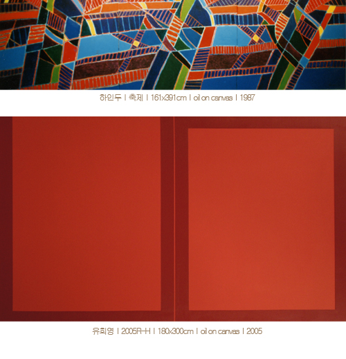 이 전시에 초대된 상당수의 작가들은 화력을 시작하는 초기에 이런 앵포르멜과 추상표현주의와의 영향관계를 수용했던 편이다. 유럽에서의 앵포르멜이 전후의 피폐해진 시대적 상황을 반영했던 것처럼 우리 역시 그와 유사한 배경 위에서 그 심리적 정황을 비정형의 형식에 담아냈는가 하면, 이로부터 나름의 독자적 형식을 추상해낸 것이다. 흔히 뜨거운 서정추상으로 범주화되는 이 경향은 그룹 악튀엘을 중심으로 전개되었으며, 이에 대한 반작용으로서 차가운 기하학적 추상으로 정의되는 또 다른 경향이 그룹 오리진을 중심으로 전개된다. 요샛말로 주정주의와 주지주의의 두 경향이 각각 앵포르멜에 대한 작용과 반작용의 결과로서 현상한 것이다.