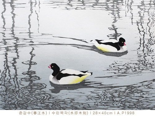 수인목판화(水印木版畵)는 순수한 중국인들의 정취가 그대로 묻어있는 독특한 판화기법의 하나로서, 마치 한 폭의 수묵화를 대하는 듯한 착각에 빠지게 만든다. 화선지에 찍어내는 재료나 기법에서도 그렇지만 단호하면서도 강렬한 세계관을 구사함으로써 아시아적인 채취를 더욱 깊이 음미할 수 있는 매력을 지닌다.