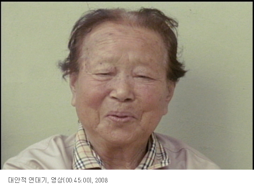 ‘대안적 연대기’는 본인의 전(前) 호적지인 경상남도 함안군 여항면 내곡리를 1년여 동안 참여 관찰하며 여성주의적 시각에서 이 지역 여성노인들의 생활을 기록한 실험적인 영상물이다. 농업과 축산업을 통한 소득으로 소비재를 구입해서 사용해온 전형적인 농촌마을인 내곡리는 높은 산들이 벽처럼 에워싸고 있어서 면적이 작을 뿐 아니라, 이농현상으로 인해 적은 가구 수로 이루어져 있다. 현재는 인구의 대부분이 고령의 노인들이며 이씨 혹은 조씨 성을 가진 사람들이 많으며, 성별로 보면 여성들이 더 많이 생존해 있고 거의가 혈연과 친족 혹은 동무 관계로 엮여 있다. 내곡리에 사는 여성노인들이 반 세기가 훨씬 넘는 동안 각자 서로 다른 강도로 겪은 가부장제의 성별화된 경험이 작품 ‘대안적 연대기’의 심미적 구성에 중요한 인자가 된다. 이 여성들이 口頭로 밝히는 삶의 흔적들을 담고 정리하면서 제도 및 개인 의식 속에 있는 가부장적인 이데올로기를 발견하게 된다. 여성의 열등성을 규정하는 문화적 공리가 공동체 내에서 하나의 진리로 받아들여지면서 다양한 가부장적 담론의 망을 통하여 여성성을 규정하는 힘으로 작용하고 있는 것이다. 하지만 자기 내부에 있는 ‘남성의 눈’을 의식하는 순간, 이들의 언어가 부성주의적 관습을 답습하고 있음에도 불구하고 이것을 고정적인 구조로 파악하지 않으며, 그 통찰이 특정 역사적 순간에 가능한 변화하는 양식일 뿐이라며 여성들이 가부장적 사회에 대해 스스로가 언급하면서 저항의 가능성을 열어놓았다는 점에서 효율적 생산성을 가지고 긍정성을 지닌다. 이야기하기(story-telling)는 과거가 현재에 ‘말을 걸게’ 함으로써 역사를 재구성한다.