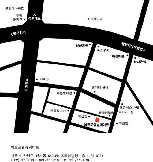 장소: 서울시 강남구 신사동 643-20 프라임빌딩 1층 아트포럼 뉴게이트 전시장