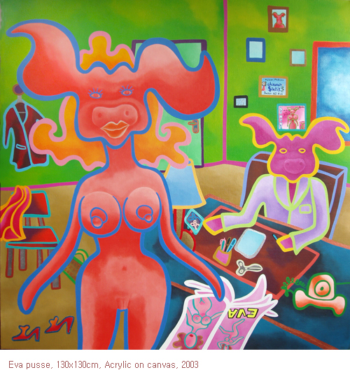 오렐리 드 라 카디르(Aurélie de la cadière)가 표현한 동물의 이미지는 긴 속눈썹을 가진, 다소 공허한 눈빛의 동물들이다. 진한 색채감, 늘어진 형태들, 심지어 어둠 속에서도 빛을 발하는형광색은 회복 불가능한 허무함을 표현해내고 있다. 그는 인간과 동물을 유머러스하게 결합시킨다. 물질적인 것에 대한 인간의 내면의 본성은 동물의 얼굴로서 희화화된다. 이렇게 탄생한 생명체들의 쾌락은 즉각적이고, 트랜디하며, 외설적인 이미지 속에서 끊임없이 반복된다. 한나 바바라(Hanna Barbara)의 만화를 연상시키는 오렐리의 캐릭터에서는 동물적인 특성은 살펴볼 수 없다. 단지 희화화 된 영혼들은 오로지 자신에게 즐거움을 가져다 주는 쾌락에만 반응한다. 이와 같은 탐욕스러운 욕망들의 출현은 캔버스 속 그들 자신의 모습을 숨기기엔 역부족이다. 고독은 곧 영원한 허무로 연결된다. 그렇지만 이는 곧 현재 우리가 살아가는 모습을 넌지시 반영해 주는 이미지이기도 한다.