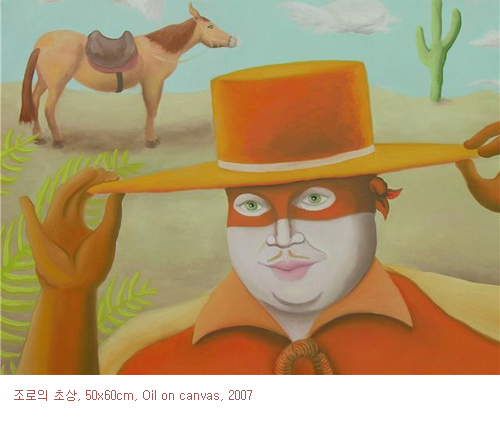 니콜라 모로(Nicolas MOREAU)의 자연스러운 색감과 표현은 매우 감성적이다. 영화 속 장면의 조로(Zorro)를 뚱뚱한 모습에 넉살스러운 모습으로 표현한 작품은 코믹한 느낌을 준다. 오렌지색 옷을 입고 마스크를 쓴 영웅 조로의 희화화된 표정은 우리에게 매우 친숙하면서도 색다르게 다가온다. 뿐 만 아니라 마스크 사이로 몽환적인 두 남녀가 교환하는 에로틱한 눈빛은 마치 은밀히 나누는 대화가 들리기라도 하 듯 캔버스에 생동감을 불어넣어준다.