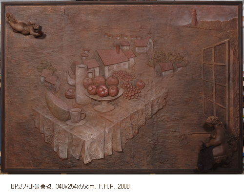 작가의 30년간 한결같은 주제인 '평화'를 일상 속에서, 그리고 특히 혼자서 여러 일들을 몰입되어 짓나서 하고 있는, 몸은 풍만하고 얼굴 표정은 소녀 같은 여인들을 통하여 표현