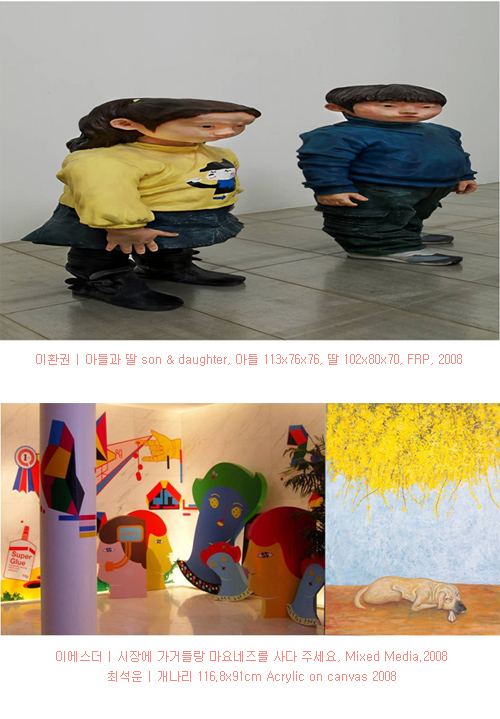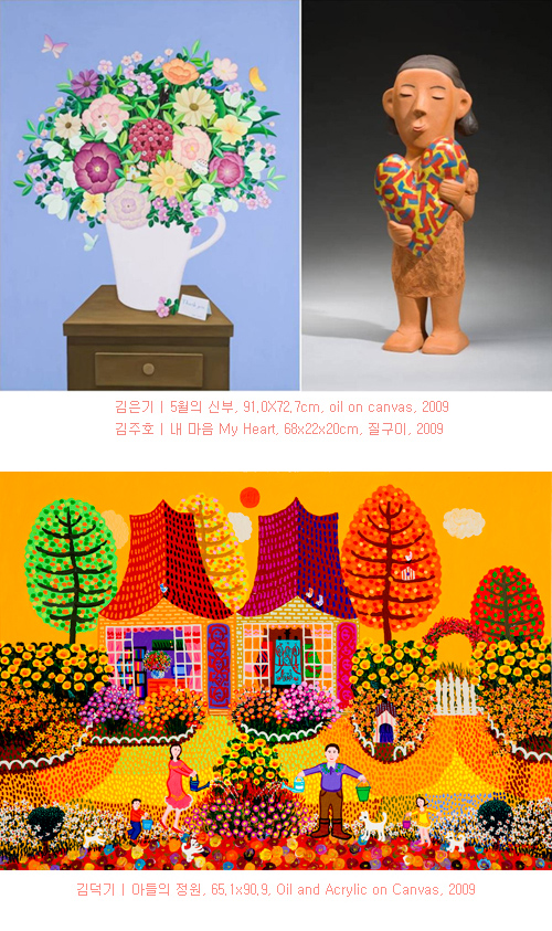 한편, 곧 태어날 아이들을 향한 부모의 설레임과 사랑은 도자기로 하나하나 구워낸 파스텔 톤 곰인형이나 토끼인형들의 웃음에서 고스란히 드러난다. 곰인형과 토끼인형을 설치한 김현수의 나 는 김현수 작가 자신의 어린시절의 추억과 인형에 대한 집착을 보여준다. 줄곧 가정의 소중함을 피력해온 김덕기는 한층 밝고 화려한 원색으로 한없이 투명하고 밝은 가족의 이상적인 풍경을 그린다. <행복한 정원>이나 <아들의 정원> 등 마치 사랑의 부적처럼, 다정한 부부와 어린 자녀들, 그들이 함께 사는 정원딸린 그림 같은 집의 사랑 넘치는 풍경은 그의 그림을 보는 우리들에게까지 그들의 사랑을 전염시킨다.