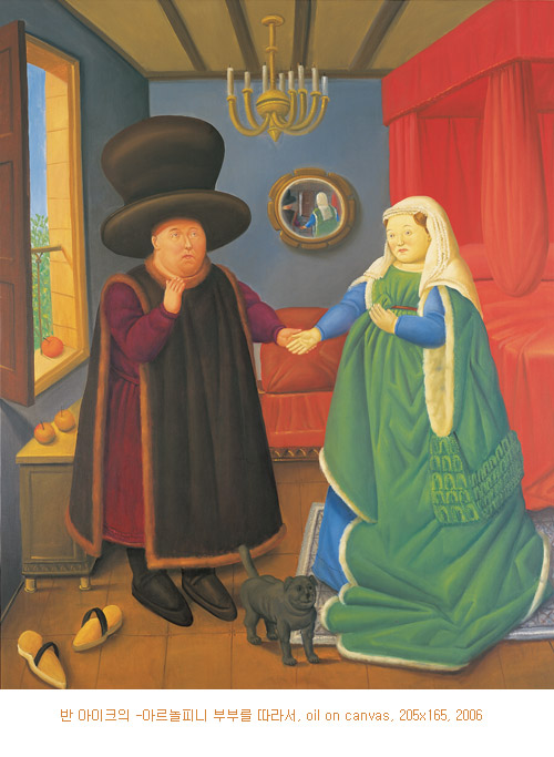 - 전통적인 작품에 대하여 연구하고 자신만의 언어로 재해석하여 보테로식 화면으로 재탄생시킴