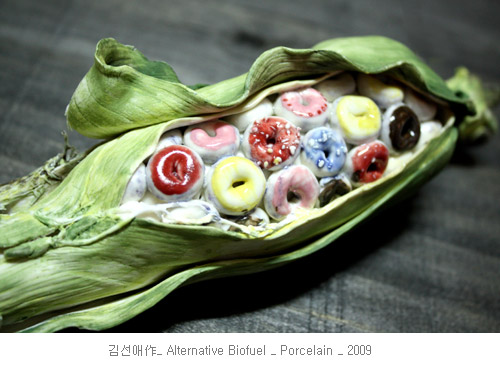 김선애는 도자기에 생태, 환경, 대중문화 등 현재 가장 떠오르는 사회이슈들을 접목시키는 개념 설치 작업을 한다. 사람얼굴형태의 콩을 만들어 캔이나 봉지에 넣어 유전자 식품에 대한 문제를 제기하고, 도넛츠와 파스타, 베이컨 등 서양 식량을 넣은 옥수수를 만들어 바이오 연료와 식량을 대비시킨다. 인기미국드라마에서 나오는 세트를 미니어처로 만들고, 영국과 미국 드라마 제작하는 회사들로 미국 전역을 있는 지하철 지도를 만든다. 해리포터, 스파이드맨의 영화 속 주인공들 그리고 히어로스, 메를린, 스몰빌의 인기 미드 주인공들을 영국 찻잔에 프린팅한 히어로 티(Hero tea)작업은 작가가 거주하고 있는 영국의 차 문화를 반영하는 것으로 실제 차를 마시기보다는 영웅이미지에서 더 좋은 기운을 받게 된다는 현대인의 욕망충족방식을 말하고 있다. 김선애는 각 나라마다의 고유문화나 생활방식을 고려하지 않고 영향력있게 파고 들며 세계화 시켜버리는 다국적 기업과 공통문화주의에 대한 무거운 주제를 친숙한 세라믹의 키치적 표현방식으로 유머러스하며 경쾌하게 풀어내고 있다.