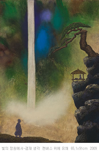 그 자신의 현실적인 삶의 태도 또한 그림 속의 인물과 다르지 않다. 자연을 찾는 대신에 화실이라는 협소한 공간에서 회화적인 이상을 향해 비상하는 꿈을 꾸고 있기에 그렇다. 누구도 침범하지 않는 견고히 닫힌 화실에서 세상과 절연한 채 사유의 세계를 확장하고 심미적인 깊이에 이르려는 태도는 은일고사와 다르지 않다. 실제의 자연을 재현하지 않는 그에게 자연은 그저 사유의 매개체일 따름이다. 자연은 아름다운 풍경을 만드는 조형적인 매개물이고, 사유의 지평을 넓히는 이상경이다.