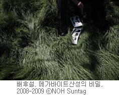 미군기지 확장으로 마을을 빼앗긴 대추리에서 미군기지 레이다돔을 포착한 ‘얄읏한 공’, 이른바 찍새들이 현실을 성실하게 재현하고 있는 상황을 포착한 ‘중계자’, 정치적 풍경의 현실과 그것을 조작하는 이데올로기의 실체를 은유한 ‘배후설’. 세 섹션에 걸친 그의 사진은 현실을 은유함으로써 일상을 직조하는 현실의 근저를 성찰한다. 정치, 사회적인 이슈를 포착한 재현으로서의 기록들을 예술적 언어로 전유하는 노순택 사진은 현실의 재현이면서 동시에 재현에 대한 메타크리틱이다.