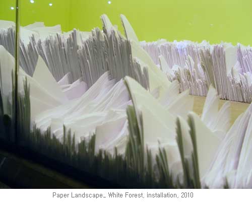 이수진의 작업은 공적 영역과 사적 영역 사이의 엇박자를 보이는 현실의 괴리를 보여준다. 정주하지 못하는, 도시 이주민으로 떠돌아야만 하는 근로자들의 현실도 드러낸다. 이번 전시에서 이수진은 바늘, 종이, 비누 등과 같은 물질들을 수백, 수천으로 집적화하여 하나의 독창적인 풍경을 만들어냈다. 반복되는 동일한 모듈(module)들은 생성과 소멸의 순환 구조를 쉼 없이 반복, 재생하는 현대도시 문명과 닮아 있다. 동일한 틀로부터 특정 목적을 위해 대량 생산된 복수의 재료들을 소재로 한 이수진의 작업은 단일한 하나의 풍경을 생성시키고 있다. 이러한 집적에 의한 생성 구조는, 먼지도 두께를 가지듯 차근차근 쌓아가는 현대 도시 근로자들의 소망과 바람, 자라는 꿈을 상징한다. 주재료로 사용한 종이, 바늘, 비누 등과 같은 재료들은 대림동, 구로동 인근의 봉제공장과 가방공장에서 일하고 있는 도시 여성 근로자들의 미래적 희망과 꿈을 상징한 것으로 보인다.