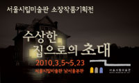 <수상한 집으로의 초대>소장품기획展이 오는 3월5일부터 2010년 5월23일까지 서울시립미술관 남서울 분관에서 열린다. 이번 전시는 서울시립미술관의 소장 작품들을 기존의 장르적 구분에 의해 보여주기 보다는 하나의 주제 하에 구성하여 좀 더 새로운 차원에서 소장품을 바라볼 수 있는 시각을 제공하고자 기획되었고 아울러 이번 전시의 특성 상 그간의 소장품 전에서는 많이 보여지지 않았으나 동시대 현대 미술의 다채로운 단면을 보여줄 수 있는 소장품들로 전시를 구성해보았다. 그리하여 이번 소장품 기획전은 현대미술의 다양한 흐름과 시도, 새로운 패러다임을 담은 동시대 작가들의 작업들을 만날 수 있는 기회가 될 것이다.