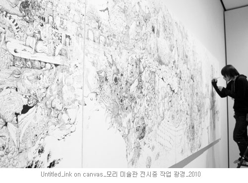모리미술관 전시작품과 더불어, 현장 드로잉으로 완성되는 신작 시리즈를 동시에 감상할 수 있는 전시