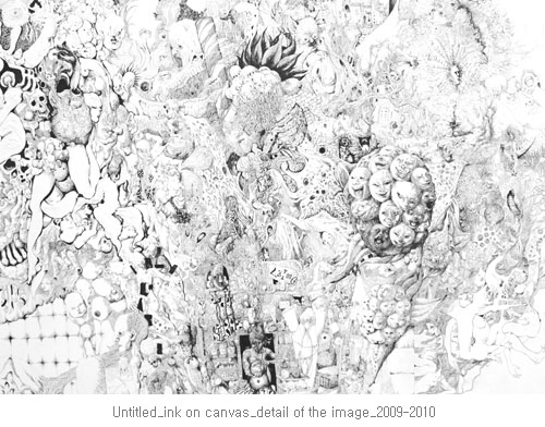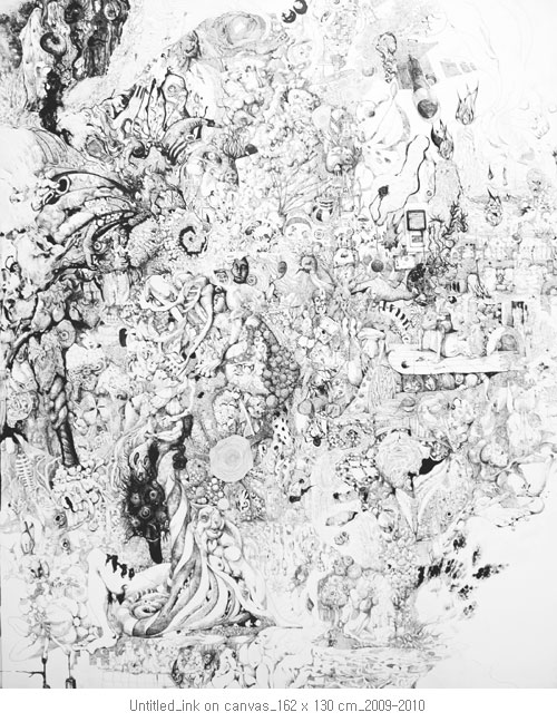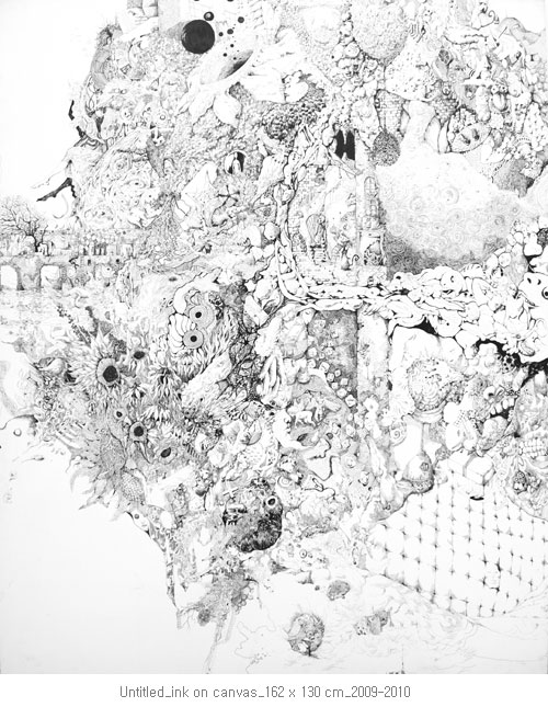 정지해 있는 캔버스 위에 그려진 선들은 사진과도 같은 점의 연속이 되어 결국 동영상이 된다. 이를 가능케 하는 작가의 역주는 아이러니하게도 형태에 대한 공포로도 느껴진다. 자신을 두렵게 하는 ‘형태’들을 세상에 일러바치려는, 어쩌면 소아병적일 수도 있는 두려움이다. 그와 그 형태들은 광활하고도 하얗기만한 캔버스 안에서 공존하고 있는 것이다. 인간에게 미증유의 기억, 완전히 재생 가능한 기억이란 없다. 그의 작품활동이 계속될 수 있는 까닭은 자신이 재현해낸 순간과 기억이 온전히 합치될 수 없음 때문인지도 모른다.