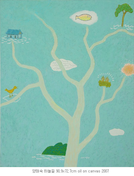 조덕환, 양태숙은 어린아이의 시선으로 또는 아이가 가진 조형의 언어로 세계를 보여준다. 조덕환은 요술모자와 쿠츠 나힌(kutz nahin) 시리즈를 통해 아이의 상상, 아이의 시간을 가시화 시킨다. 그의 작품들은 시간의 부유나 환상적인 동화 속 아이의 세계가 드러나고 있어 작가는 낯선 시간 여행을 통해 강렬했던 유년기의 시간으로의 몽상을 꿈꾸고 있음을 알 수 있다. 물질적 상상력이라는 몽상으로 끌고 들어가는 물질의 세계와 그 몽상을 자유롭고 유연하게 끌어들이는 유년기의 추억은 강력한 조형의 매개채로 구체화됨을 조덕환의 작품에서 볼 수 있다. 양태숙은 나뭇잎과 여행이라는 주제를 통해 작가가 추구하는 영원한 자유에로의 소망을 연출한다. 실은 창작을 하는 모든 화가들에게는 속박을 벗어난 자유에의 추구가 무의식적이든 의식적이든 조형으로서 드러나기 마련이다. 어쩌면 창작의 궁극성이 내면의 자유나 존재의 자유에의 추구라고 해도 과언은 아닐 것이다. 양태숙의 조형은 아이와 같은 어눌한 어법을 빌려오는데, 이는 분청사기나 민화 속의 다정한 친근한 조형과도 유사하다. 이것은 작가가 순수한 자연에의 가시화를 위한 장치이기도 하며 단순성으로 유도되는 강력한 조형에의 환기성을 드러내기 위한 방법인 것이다. 이 안에는 작가가 오랫동안 투영해 온 삶의 진솔한 이야기와 뿌리 깊게 존재하는 작가의 정체성을 나뭇잎을 통해 은유한다.