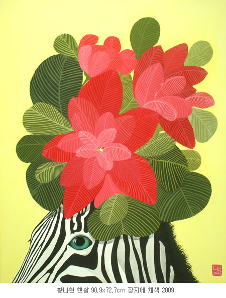 황나현은 채색 동양화의 아름다움을 얼룩말과 원시자연이라는 이국의 자연, 확장된 자연 속에서 보여준다. 장자나 노자의 순수(純粹), 무위(無爲)의 사상을 함축시킨 듯한 화면에는 꽃을 이거나 자연을 유희하는 얼룩말이 그려진다. 꽃을 올린 얼룩말의 다분히 제의적이며 신화적인 제스추어를 통해 태고로부터 존재해 온 자연의 뜻을 읽어내려 했던 인류의 관념들이 연출되기도 하며, 맑고 깨끗한 얼룩말의 표정에서 작가 자신의 자아가 투영되거나 자연회귀에 갈망하는 현대인의 모습들이 드러난다. 황나현의 작품들은 작금의 동양화의 재료와 내용이 갖는 새로운 가능성의 확장을 보여준다.