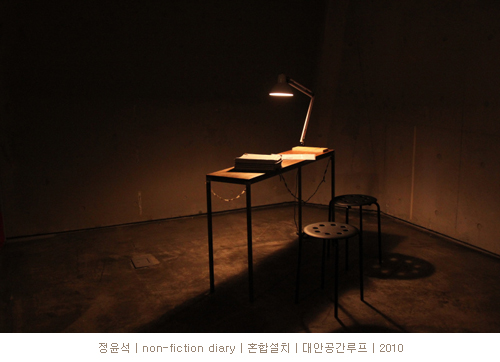 _ critic 안규철(작가) + artist 정윤석 (작가) 작가 정윤석은 <백악관> 프로젝트, <88>등 독특한 소재의 다큐멘터리 작업과 다양한 영상작업을 통해 우리 사회의 한 단면을 조망하고 있다. 이번전시에서는 K라는 가상의 인물을 설정하고, K라는 인물을 통해서 다층적이고 정리되지 않은 우리 사회의 수많은 결들을 보여주고자 한다. 작가는 이번 전시의 가상의 인물에 대한 각종 도큐멘트로 전시장을 구성하고, 이를 통해서 한 개인의 서사와 90년대 이후 우리 사회의 단편적인 사건들을 교차시키면서 하나의 이야기를 만들어낸다.