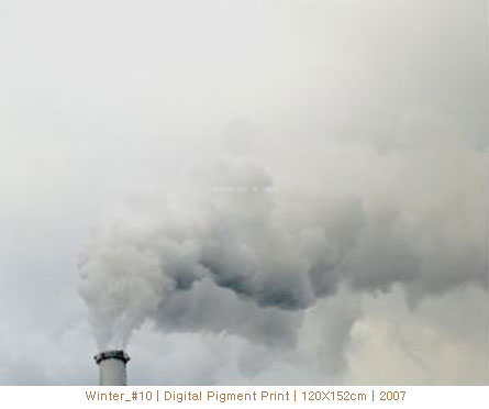 나는 지난 SHE IS...시리즈에서 당인리발전소 수증기의 변화무쌍한 형태를 사진으로 기록하고 서울의 겨울기후 데이터를 이미지 안에 삽입하여 사진적 기록 방식에 대한 다른 접근을 시도했다. 또한 현실 속 풍경의 장면에서 유추되어 나열된 단어를 다시 이미지화시켜 전시장에서는 정해진 순서로 배열을 하여 여러 가지 의미로 분절 될 수 있는 이미지의 다의적 해석에 대해 말하고자했다. 이는 재현된 이미지의 대상이 의미하는 것이 단일하게 고정 될 수 없고, 의식과 인식에 따라 파편화되어 다양한 층을 이루며 관계하는 가변적 속성에 대한 얘기다.