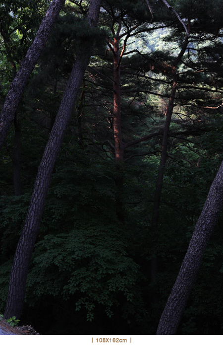 인류 사상사에서 숲은 큰 비중을 차지한다. 마치 인간들이 나무에서 내려오자마자 다시 고개를 돌려 나무를 올려다보기 시작한 것 같다. 숲은 인간이 무엇이며 무엇이 아닌지를 나타내는 은유로서 종교와 철학 담론에 두루 걸쳐 등장한다. 문화적으로 중요한 은유들이 모두 그렇듯이, 숲의 의의는 그 대략을 식별하기 어려울 정도로 복잡하면서 다양하다. 김태철의 작품들은 이러한 전통 안에서 움직인다. 어떤 면에서는 매우 추상적이면서도. 나무 몸통의 기울기가 작품 가장자리의 수직· 수평선에 대비되면서 그 중요성을 얻는다는 점에서 형식을 잘 갖춘 작품이다. 그와 동시에 대단히 구상적이어서 잎사귀의 어른거림이나 나뭇가지의 선이 전혀 들어가지 않은 공간은 1cm 너비도 채 되지 않는다. 숲의 잠재력을 일깨워서 사색을 부추기는 이 작품들의 묘미가 바로 여기에 있다.