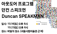 마치 마지막인 것처럼 As if it were the last time2009제6회 서울 국제 미디어아트 비엔날레 ‘미디어 시티 서울 2010’은 주한영국문화원과 함께 영국 작가인 블라스트 씨어리, 던컨 스피크먼을 초청하여 ‘미디어 시티 서울 아웃도어 프로그램’을 진행한다. 블라스트 씨어리는 지난 9월 4일부터 12일까지 서울시립미술관 야외공간에서 핸드폰을 통한 공간 이동과 인터뷰의 극적 효과를 이용한 <울리케와 아이몬의 순응>을 소개하였다. 던컨 스피크먼은 오는 10월 16일과 23일 양일간 인터넷과 MP3 플레이어를 이용하여 일상의 공간을 새롭게 발견하는 <마치 마지막인 것처럼> 작품을 소개한다.