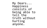(My Dears... Happiness consists of being able to tell the truth without hurting anyone.)