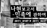 건조한 다큐를 근거로 마르지 않은 상상력을 보여주는 젊은 작가 나현. 직접 취재한 것을 작업으로 옮기고 그것을 알리는 보고전시회를 연후, 그 모든 결과를 책이라는 최종 형식으로 엮어 내는 고집스런, 기나긴 프로젝트를 진행하는 측면에서 나현은 르포―아티스트(reportage-artist)로서의 위치를 점한다고 하겠습니다. 역사적, 객관적 데이터와 작가로서의 주관적 상상력이 결합된 나현의 독특한 다큐멘터리적 허구, 혹은 지적 상상력의 세계로 여러분을 초대합니다.