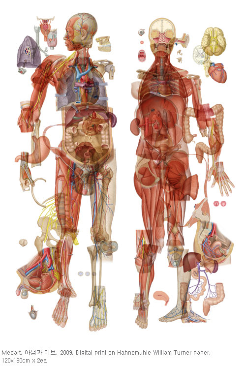 이번 전시는 그간 메드아트가 진행해온 작업들을 보여주는 세 개의 주제(메디컬일러스트레이션, 명화 속 인체의 해부학적 표현, 인체 속의 풍경-풍경 속의 인체)와 박종영 작가의 “Human Mechanism - Homunclus”로 구성되어있다. 해부학적인 몸과 이를 덮고 있는 드러난 몸을 바탕으로 과학과 예술이 융합된 이상화된 인체를 꿈꾸고 보다 많은 이들과 소통하고자 기획되었다.
