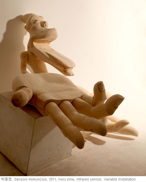 이번 ‘호문쿨루스’는 그 동안 박종영 작가가 보여준 마리오네트(움직이는 목각 인형)를 이용한 키네틱아트의 연장선에서 제작되었다. 이를 통해 뇌의 메커니즘을 이해하는 동시에 그 동안 작가가 의도해 왔던 “지배자 되어보기(Being Master)”를 체험함으로써 의식이 제거된 상태의 쓸쓸한 자아를 체험할 수 있을 것이다.