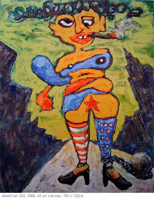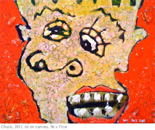 …그 내용은 그가 얽히고 설켜서 살아가는 이 세상에의 모든 경험, 지극히 개인적인 삶의 경험에서 파생된 느낌과 상상력을 발휘해 그려 나가고 있다. 이를 우화적이며 풍자적으로 다루고자 하는데 그 목표는 ?그에 의하면- 정신적 자유를 통한 자유로운 사고와 마음이 열린 상태를 동경하는 것이라고 한다. 복잡하거나 어려운 것이 아닌 그래서 부담이 없고 편해지기를 바라는 그림, 그렇게 살고 싶다는 그의 생각이 그림을 이런 식으로 만들고 있는 것이다…