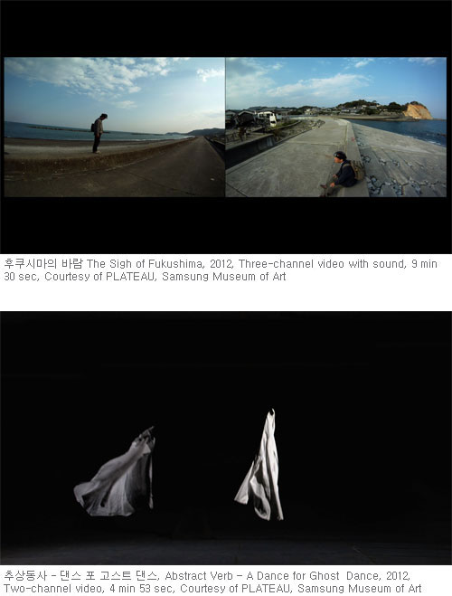 물질성 대신 정신성으로,사회현실에 대한 구체적인 언급 대신 춤과 소리의 세계로 나아간 최근의 신작들은 조형적 변화에도 불구하고 공감과 위로라는 유행가의 정서를 내면화하고 심화한 것으로 평가할 수 있다.삶의 추상영역을 탐구함으로써 ‘추상 동사’시리즈라 통칭할 수 있는 이들 신작에는 삶과 죽음의 경계에서 해원(解?)의 의미로 추는 <댄스 포 고스트 댄스>, 타인과의 소통에 대한 열망을 장구 독주로 풀어낸 <노크>,자연재해 현장인 일본 후쿠시마를 영상으로 담은 <후쿠시마의 바람>,30여 곳 사찰의 종소리를 한데 모은 <걱정-서울 오후 5:30> 등이 있으며,이들은 시대의 담론과상식으로 규정할 수 없는 현실을 행위와 소리만으로 구성하면서 타자의 고통에 공감을 나누고,더 나아가 우리 안의 존엄을 일깨우는 방식으로 사회와 새롭게 관계 맺으려는 작가의 의지를 전한다.