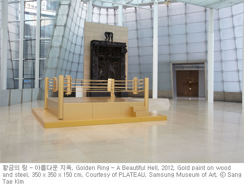 전시의 제목은 유행가처럼 길거리에 흘러 넘쳐서 이제는 통속적인 것이 되어버린 클래식 음악 ‘엘리제를 위하여’에서 차용한 것으로,작가가 지향하는 사회참여적인 미술의 의미를 담았다. 우리 사회 곳곳에서 마주하게 되는 ‘엘리제’는 ‘누구인지 알 수 없는’또는 ‘대단하지 않고 아무 것도 아닌’ 우리들 자신을 지칭하며,예술가의 작업이란 우리들 삶의 비참함을 드러내고 사회를 향해 싸우기 보다는,스스로를 위로하고 우리 안의 존귀함을 이끌어 내는 것이어야 한다는 믿음을 보여 준다. 특히 로댕의 ‘지옥의 문’과 ‘깔레의 시민’앞에 전시되어 이번 전시의 하이라이트가 될 2012년 신작 <황금의 링 -아름다운 지옥>은 ‘엘리제’가 살아가야 할 현실의 장으로서 화려함의 극치이지만 전장(戰場)과 다름없는 도시의 모습을 드러낸다.이는 ‘지옥의 문’과 대비를 이루며 관객들의 다양한 해석을 위해 열려 있다.